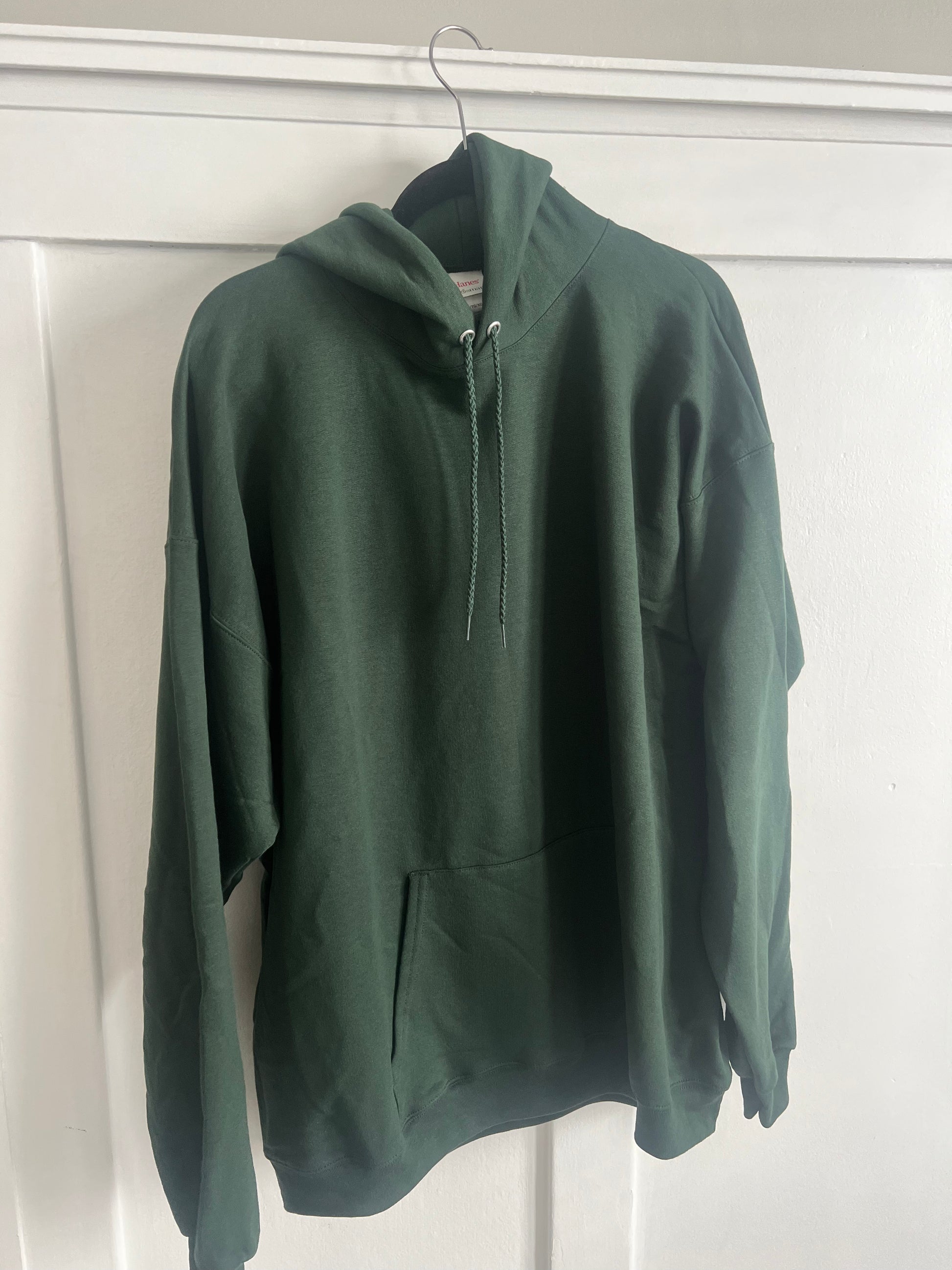 Forest green sweatshirt, with "Hot Girls Go To Therapy" on the back. A perfect way to help de-stigmatize therapy and help normalize it.